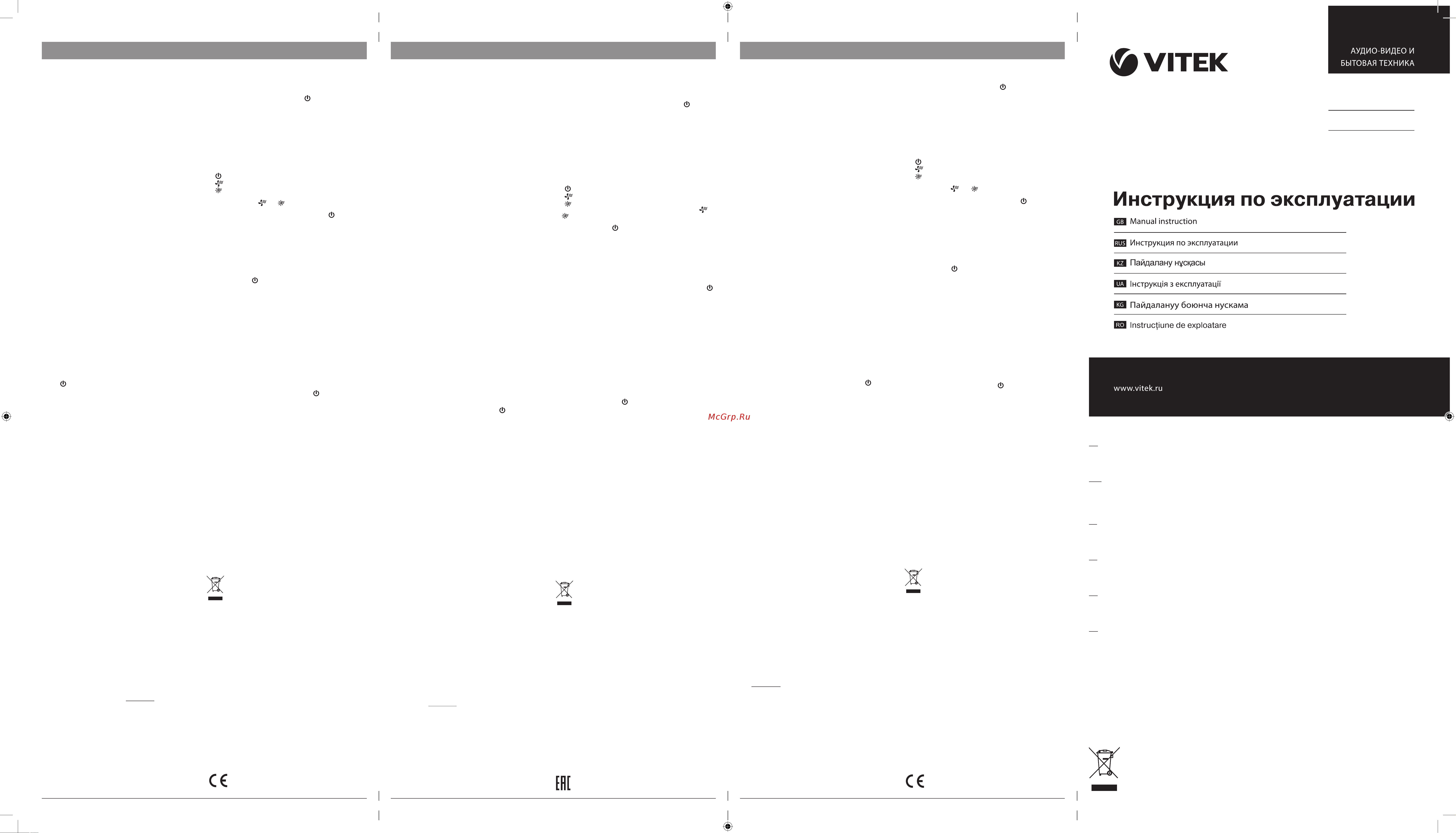 Vitek VT-2062Инструкция по эксплуатации -
