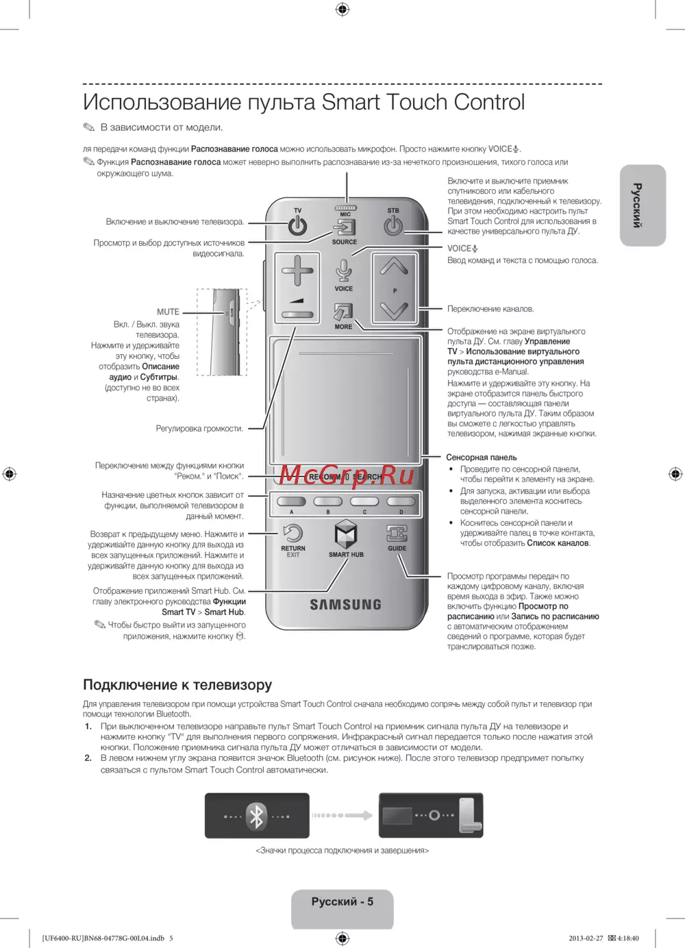 Для управления телевизором при помощи устройства Smart Touch Control сначала необходимо сопрячь между собой пульт и телевизор при