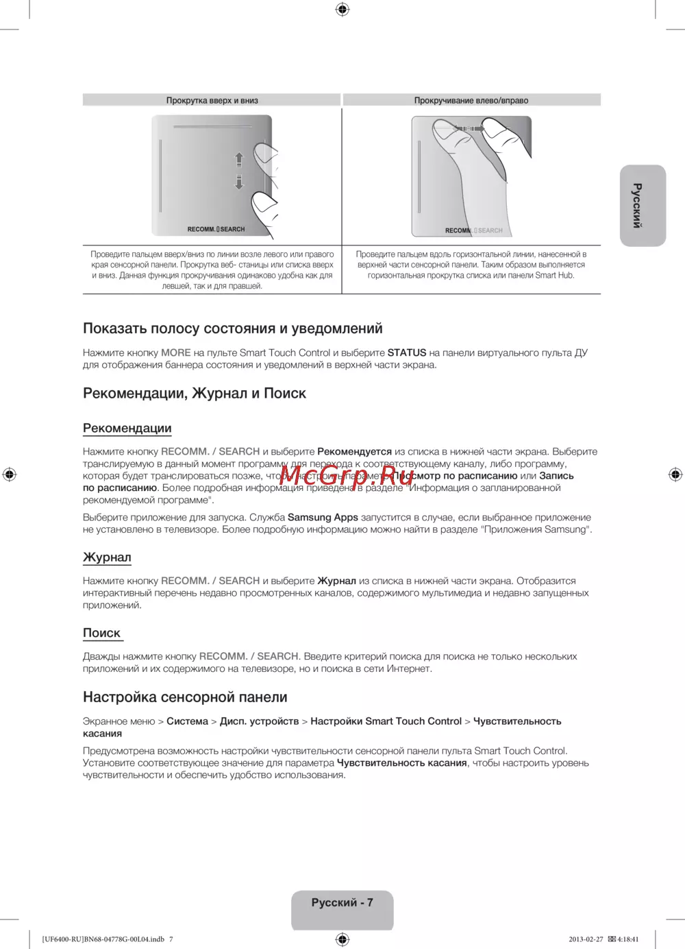 Samsung UE40F6400AK — управление сенсорной панелью: прокрутка и настройки [7/25]