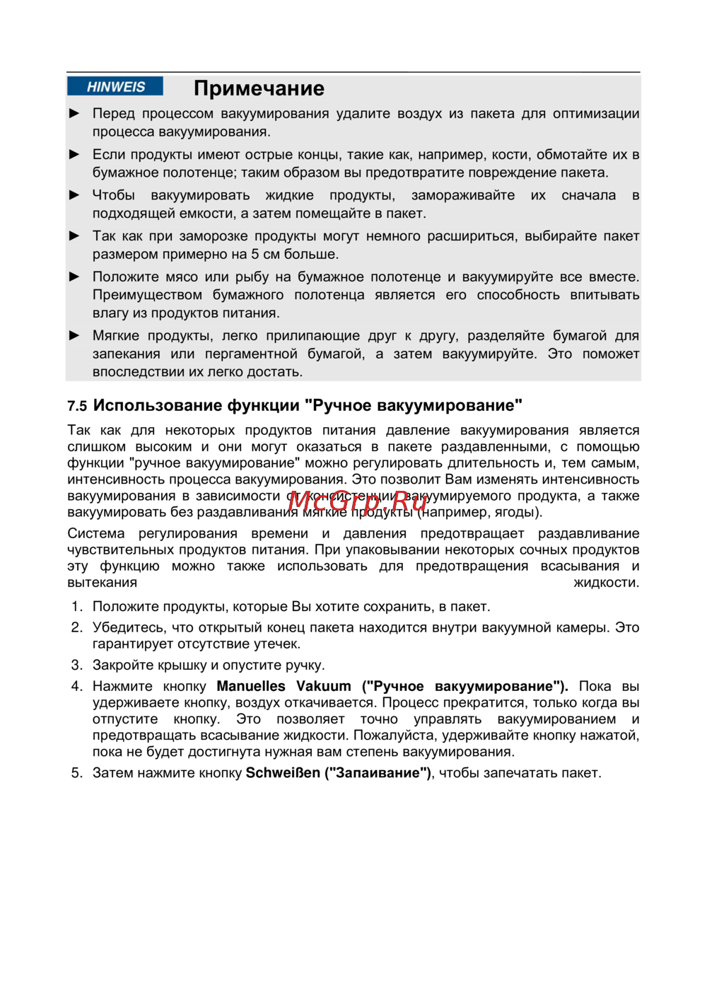 Caso VRH 690 — советы по вакуумированию продуктов для сохранения свежести [17/23]