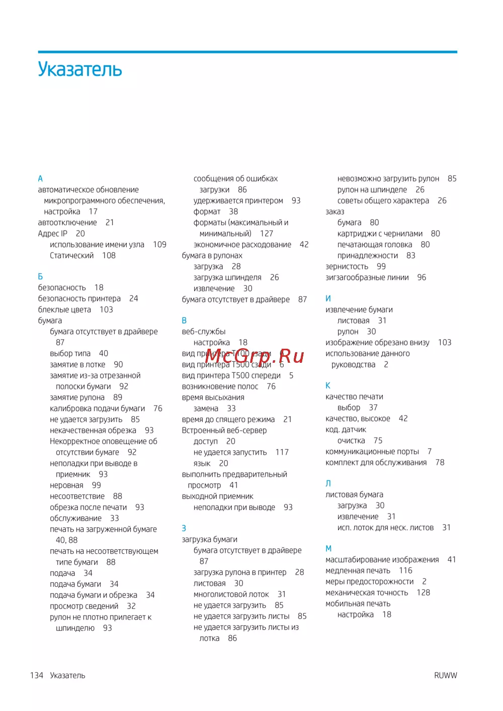 HP DesignJet T525 36" 5ZY61A [142/144] Указатель