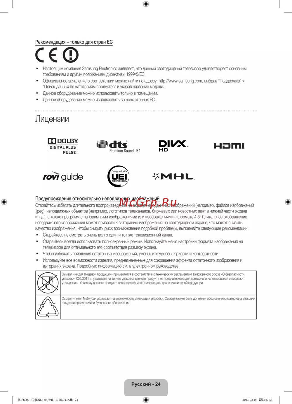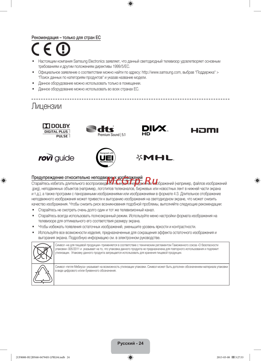 Samsung UE46F8000AT — нормативная документация и рекомендации по использованию телевизоров [47/93]