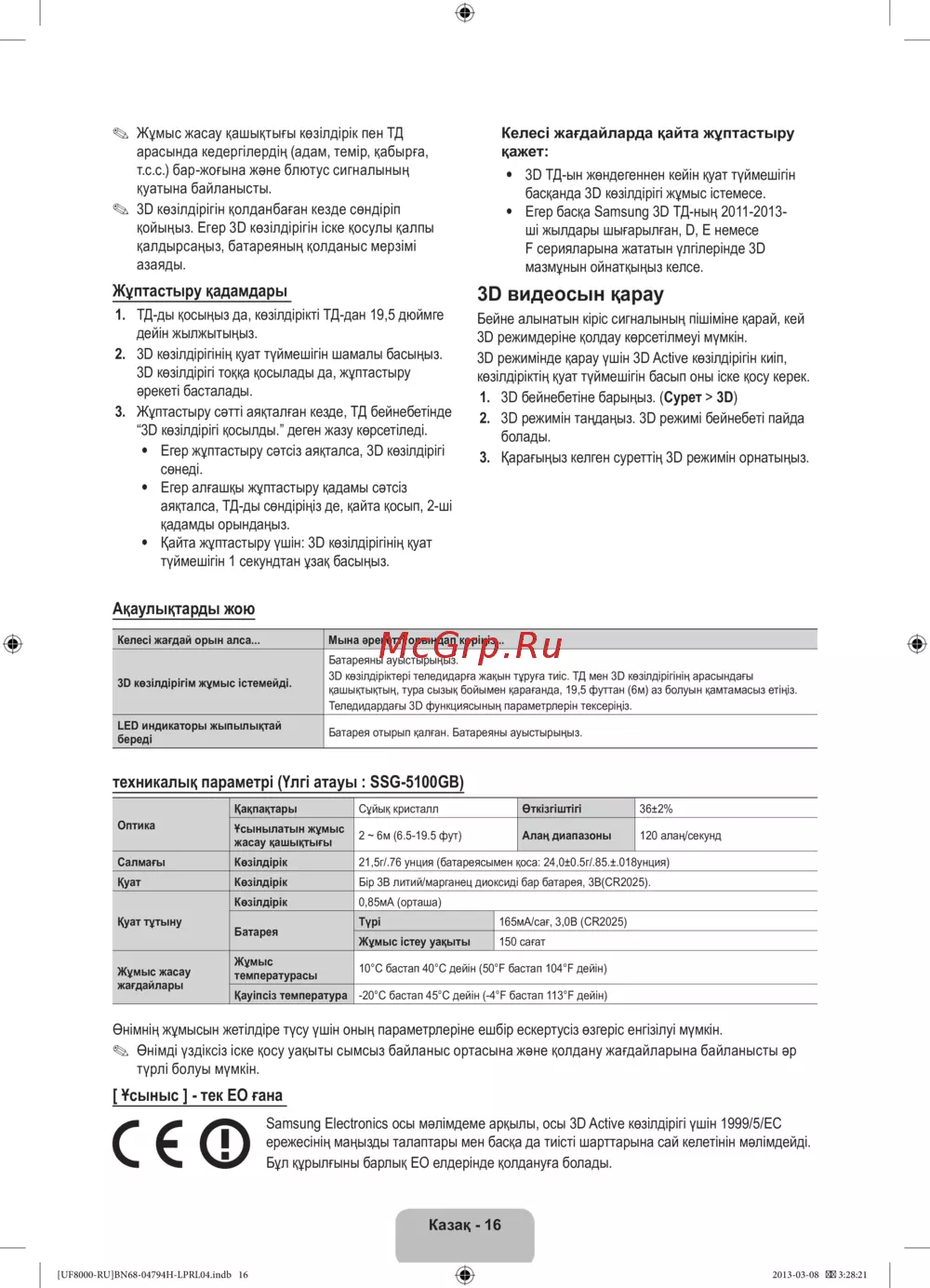 Samsung Electronics осы мәлімдеме арқылы, осы 3D Active көзілдірігі үшін 1999/5/EC