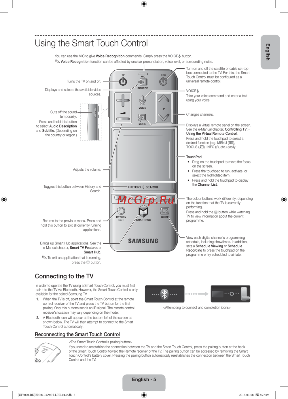 pair it to the TV via Bluetooth. However, the Smart Touch Control is only