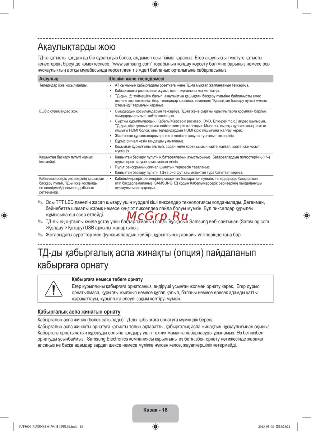 - Аударылып кетуден сақтау тд ды қабырғаға бекіту p.90