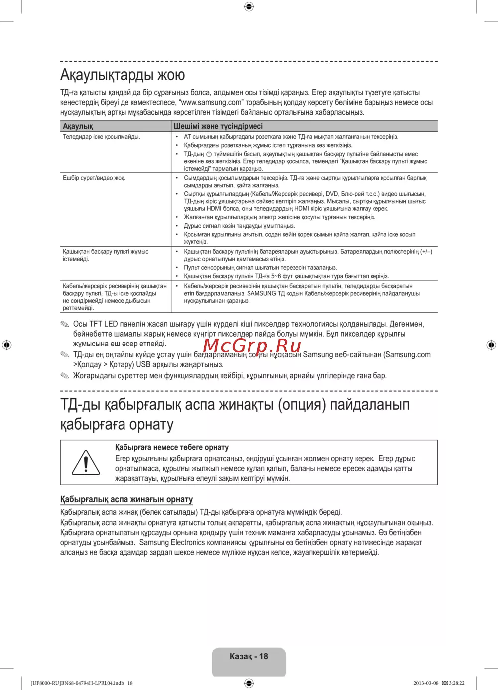 орнатуды ұсынбаймыз. Samsung Electronics компаниясы құрылғыны өз бетіңізбен орнату нәтижесінде жарақат