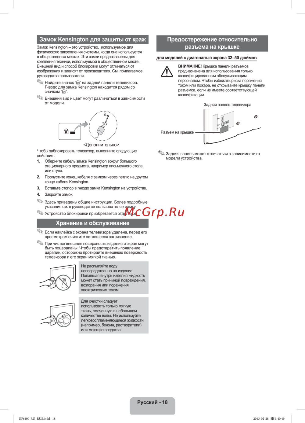 Samsung UE40F6100AK [18/21] Хранение и обслуживание