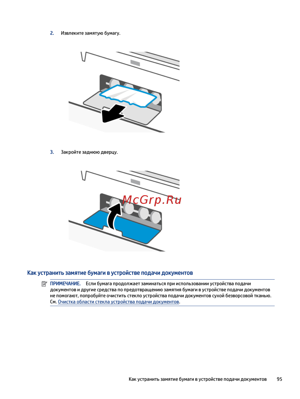 HP Smart Tank 790 All-in-One Printer (4WF66A) — как устранить замятие бумаги в устройстве подачи документов [105/153]