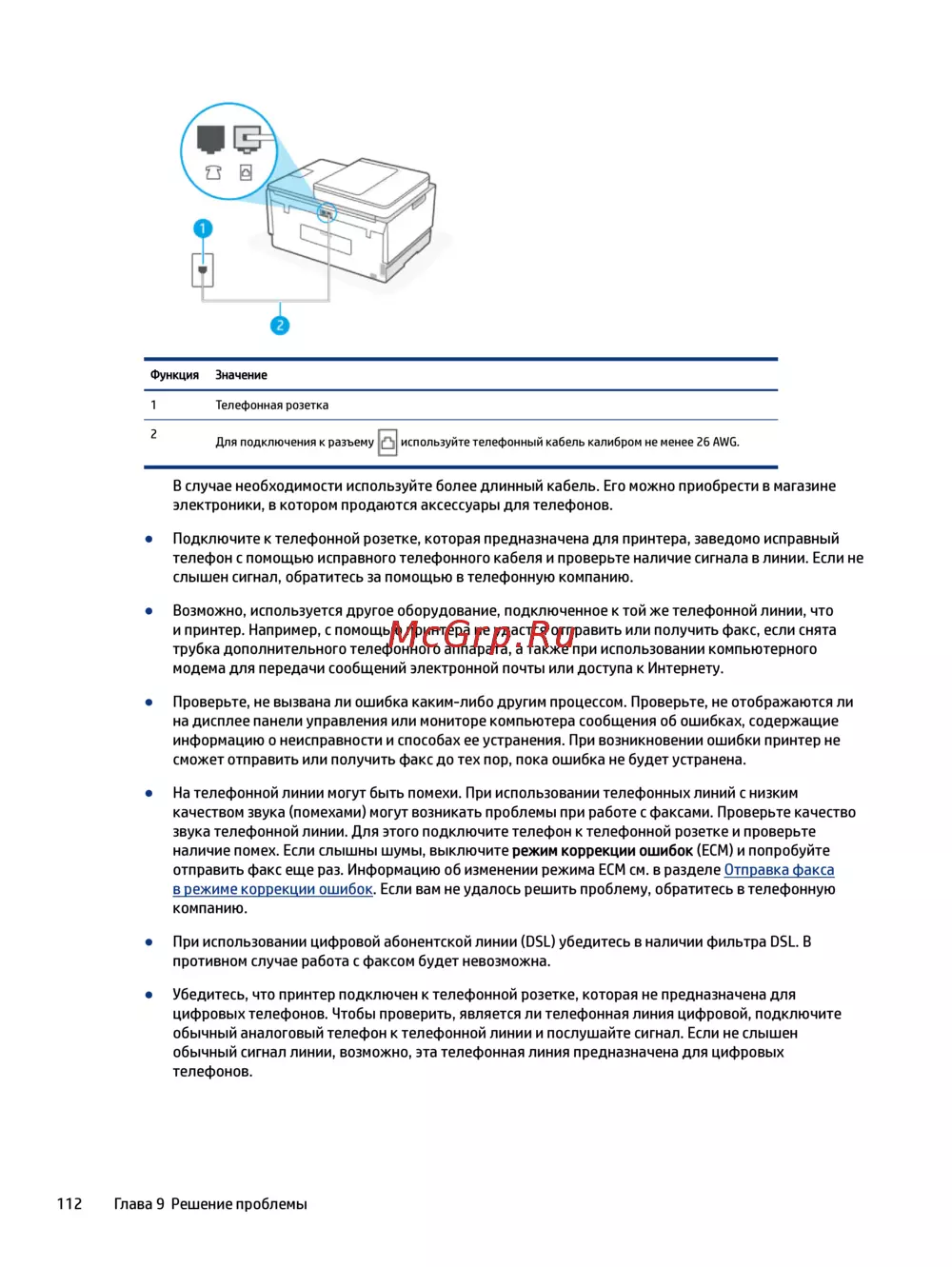 ● На телефонной линии могут быть помехи. При использовании телефонных линий с низким