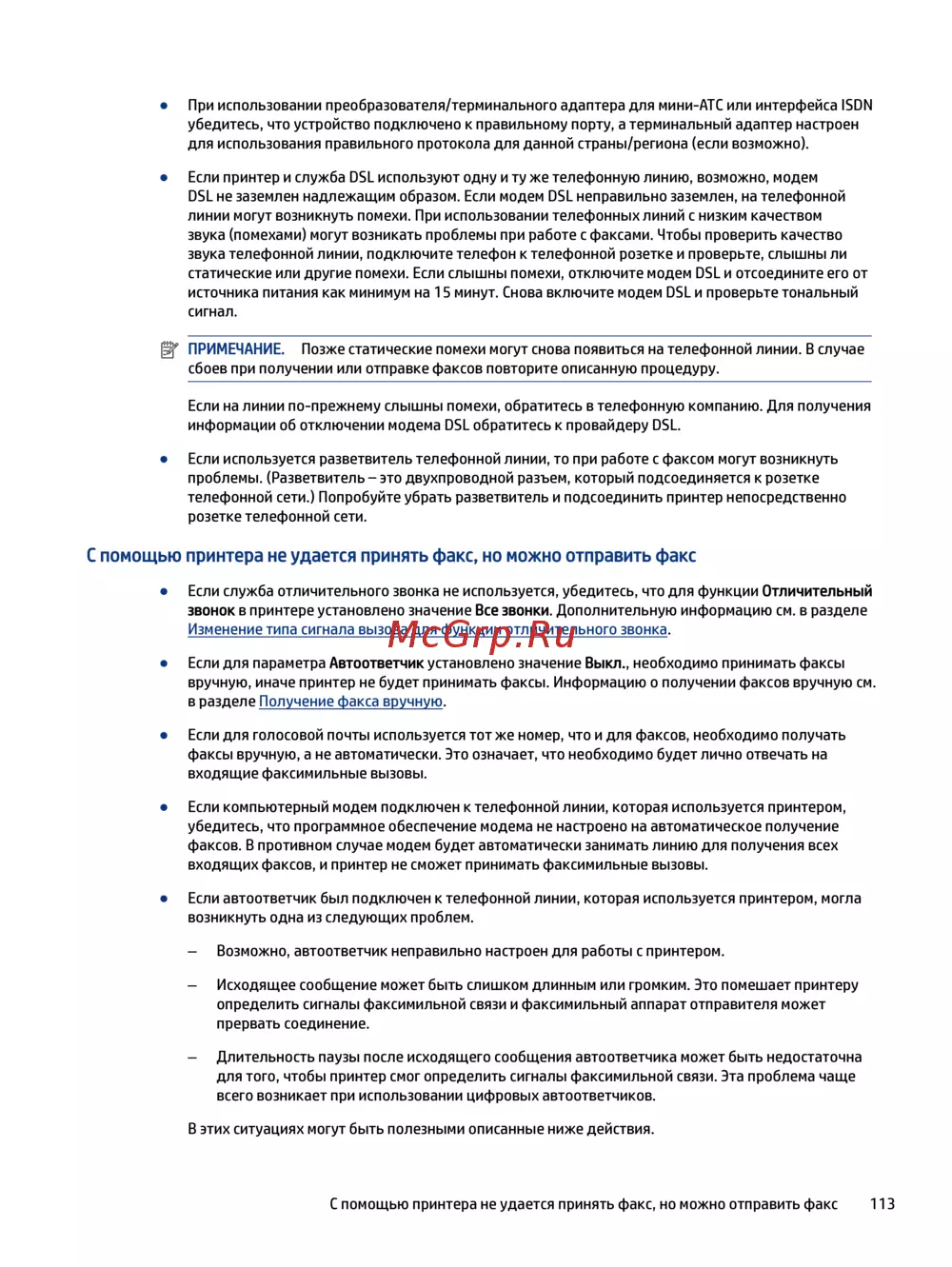 ПРИМЕЧАНИЕ. Позже статические помехи могут снова появиться на телефонной линии. В случае