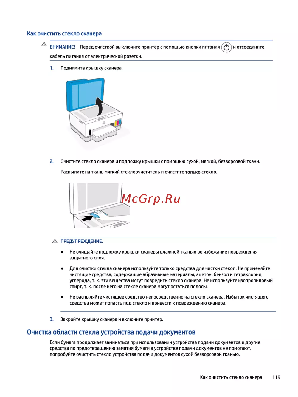 HP Smart Tank 790 All-in-One Printer (4WF66A) — как правильно очистить стекло сканера: пошаговая инструкция [129/153]