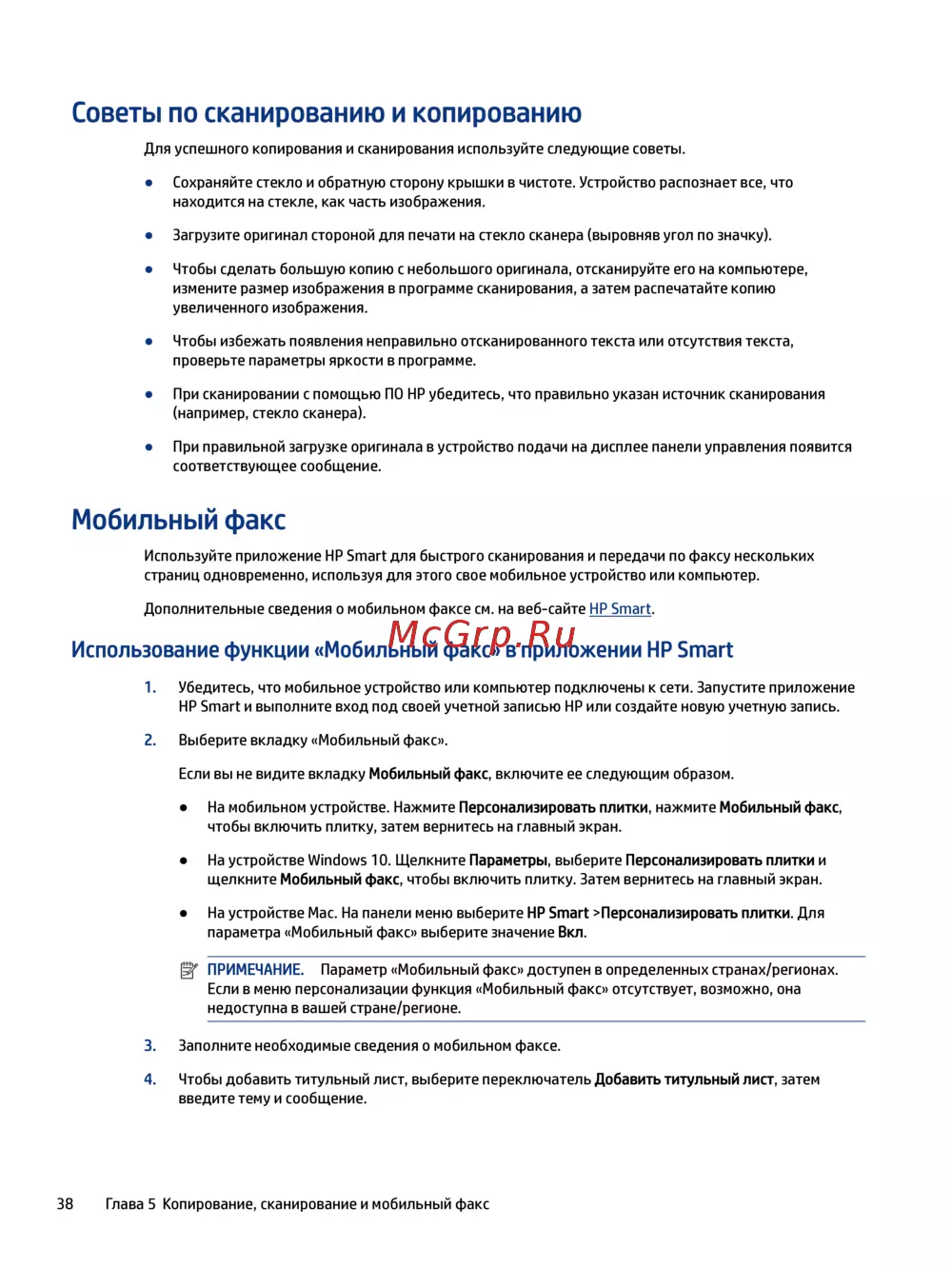 Дополнительные сведения о мобильном факсе см. на веб-сайте HP Smart.