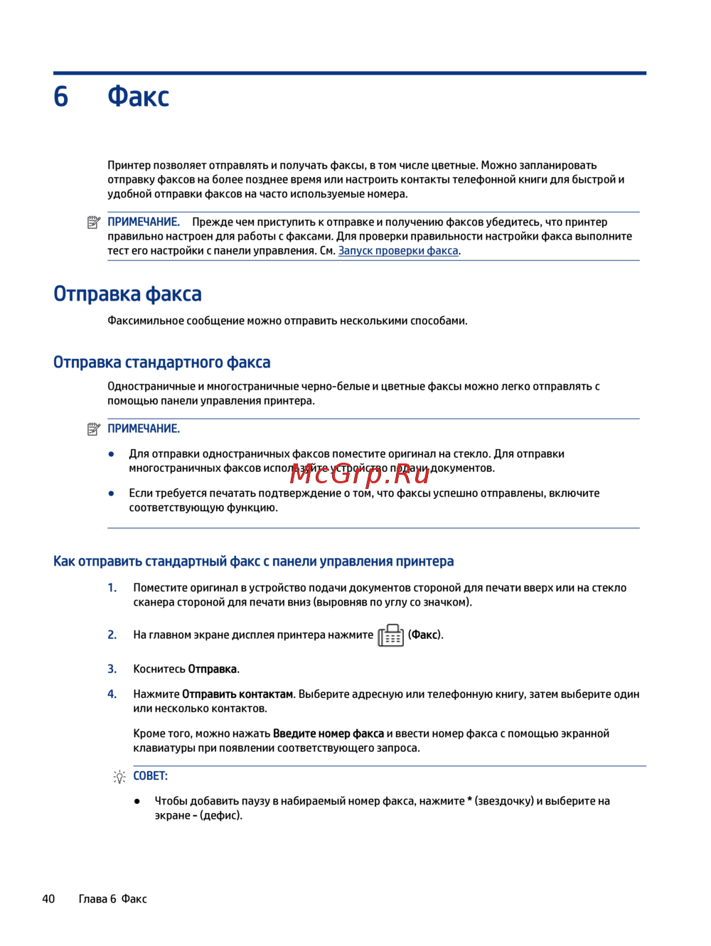 отправку факсов на более позднее время или настроить контакты телефонной книги для быстрой и