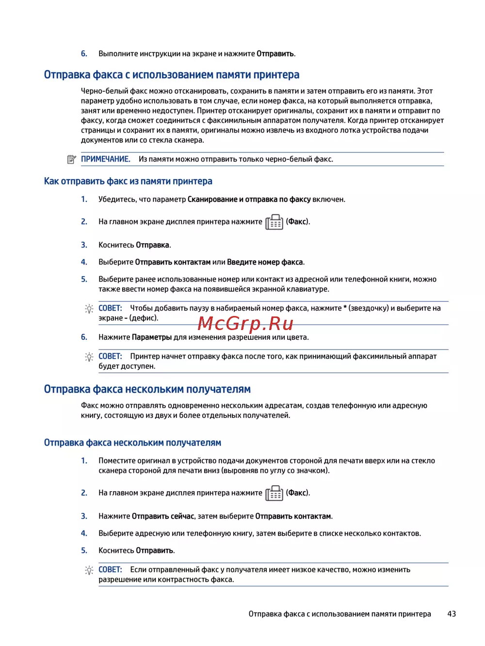 HP Smart Tank 790 All-in-One Printer (4WF66A) — как отправить факс с использованием памяти принтера: пошаговая инструкция [53/153]