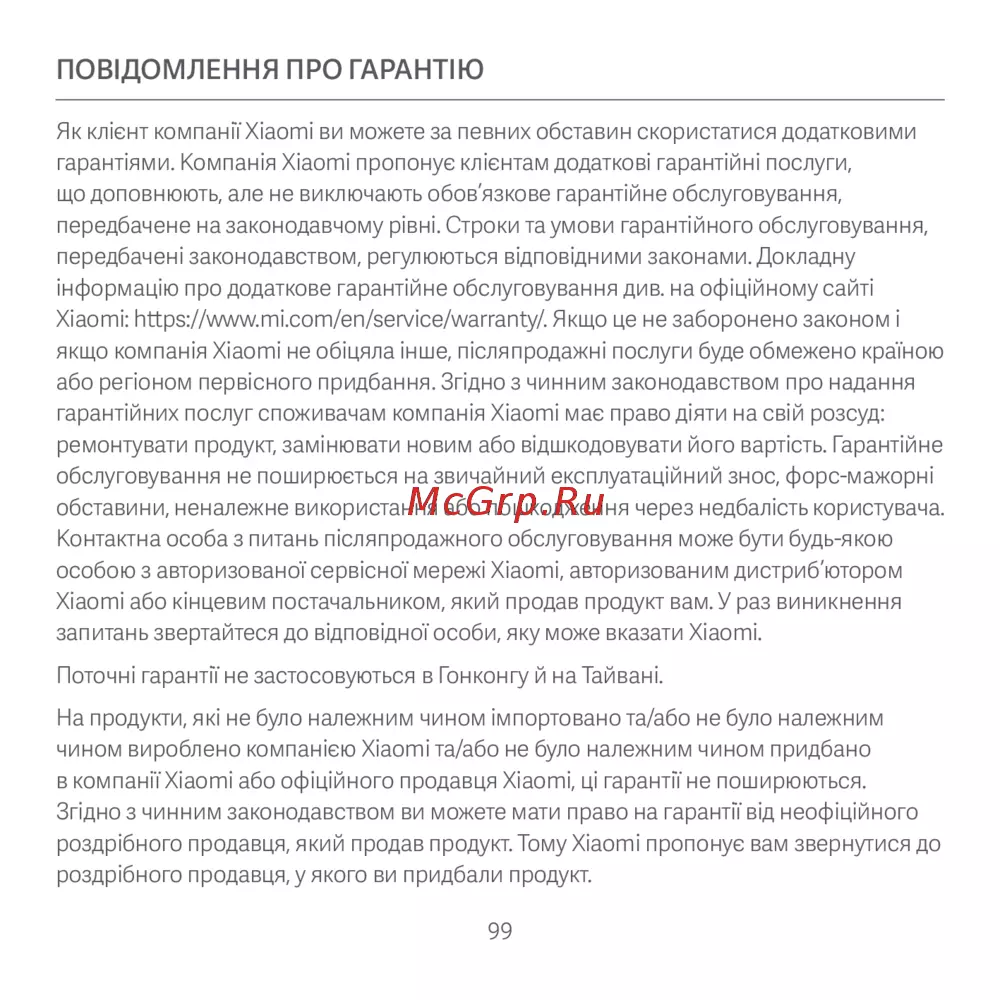 в компанії Xiaomi або офіційного продавця Xiaomi, ці гарантії не поширюються.
