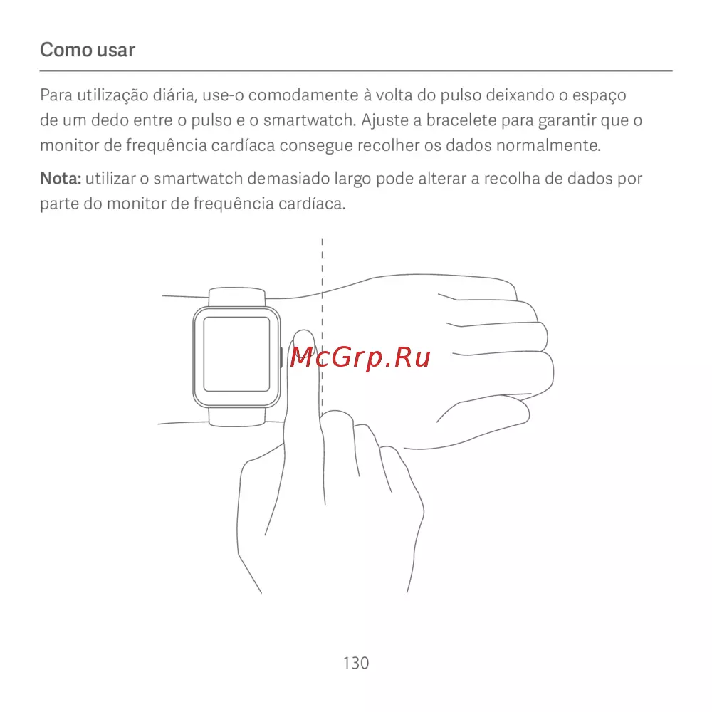 de um dedo entre o pulso e o smartwatch. Ajuste a bracelete para garantir que o