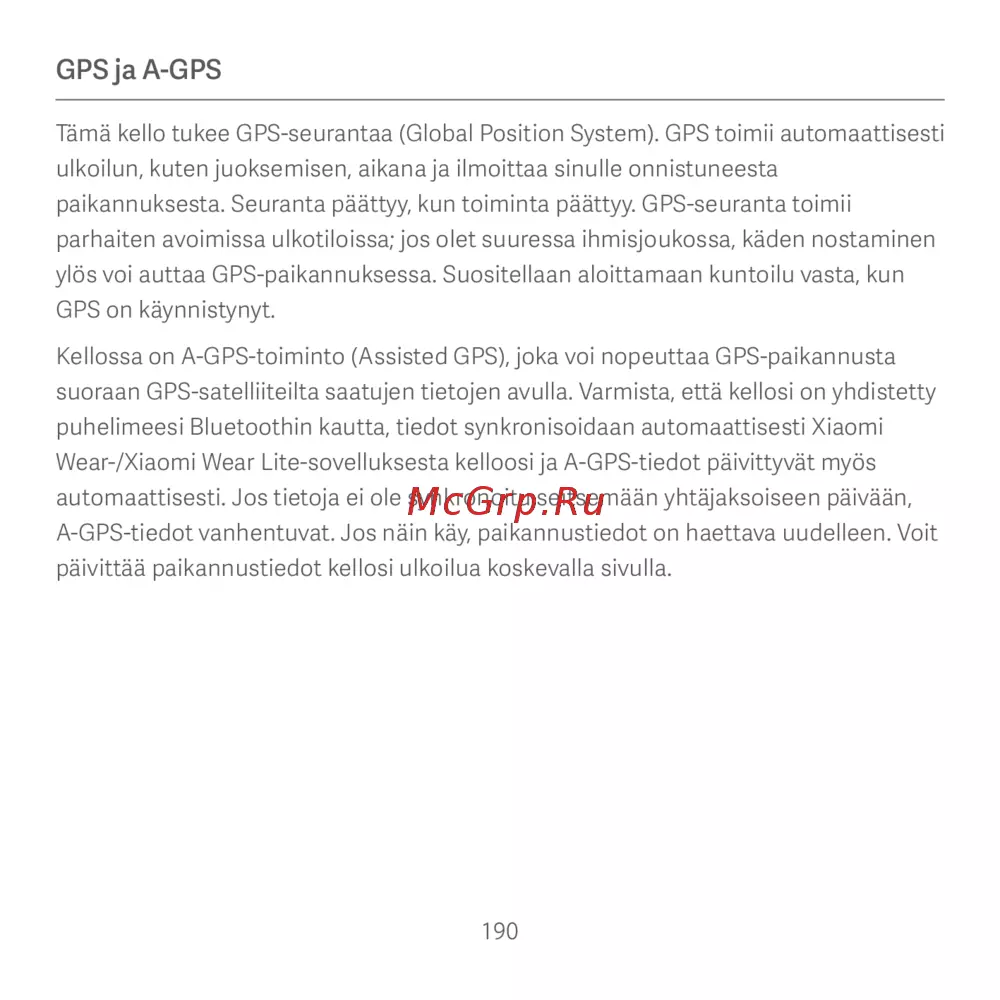 Wear-/Xiaomi Wear Lite-sovelluksesta kelloosi ja A-GPS-tiedot päivittyvät myös