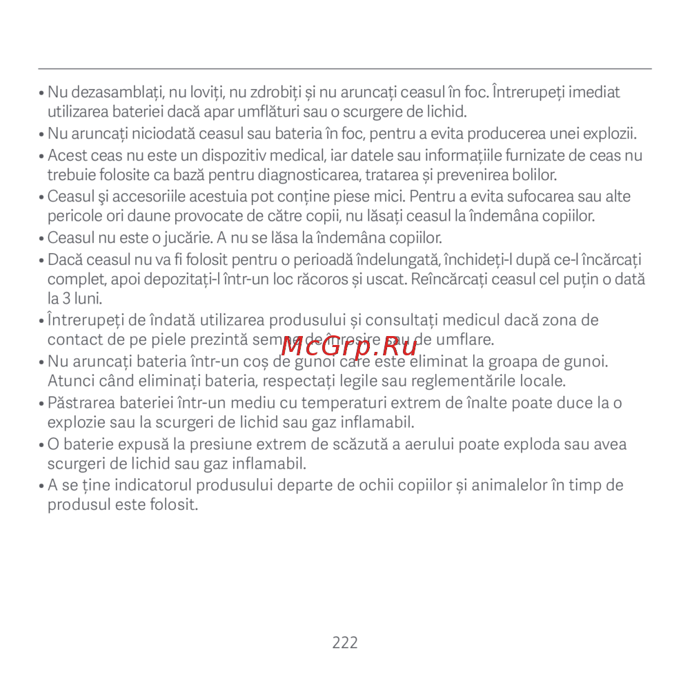 • Acest ceas nu este un dispozitiv medical, iar datele sau informațiile furnizate de ceas nu