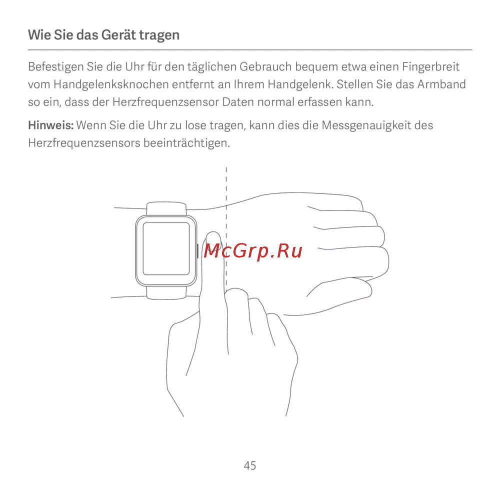 Hinweis: Wenn Sie die Uhr zu lose tragen, kann dies die Messgenauigkeit des