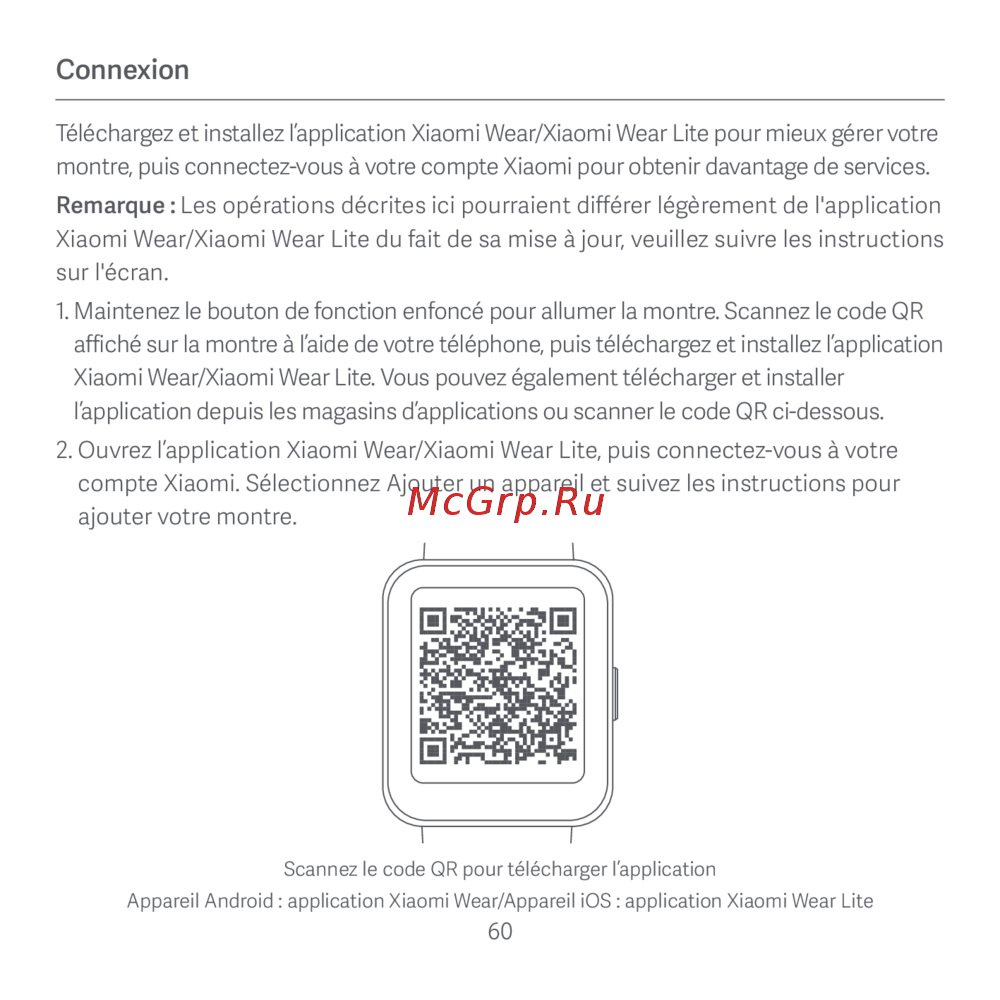 montre, puis connectez-vous à votre compte Xiaomi pour obtenir davantage de services.