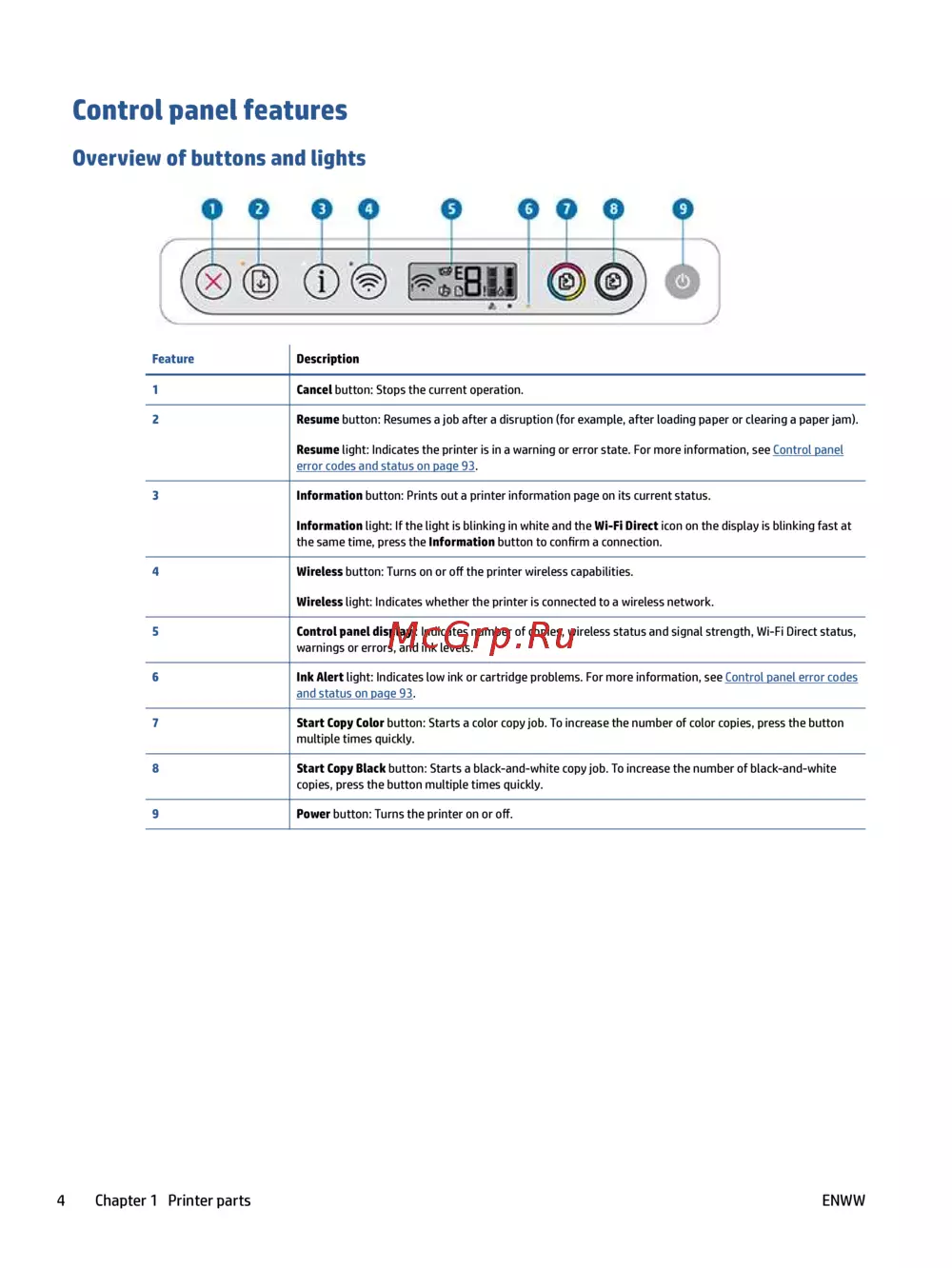 HP DeskJet Ink Advantage Ultra 4828 Printer (25R76A) — обзор функций панели управления принтера: кнопки и индикаторы [10/128]