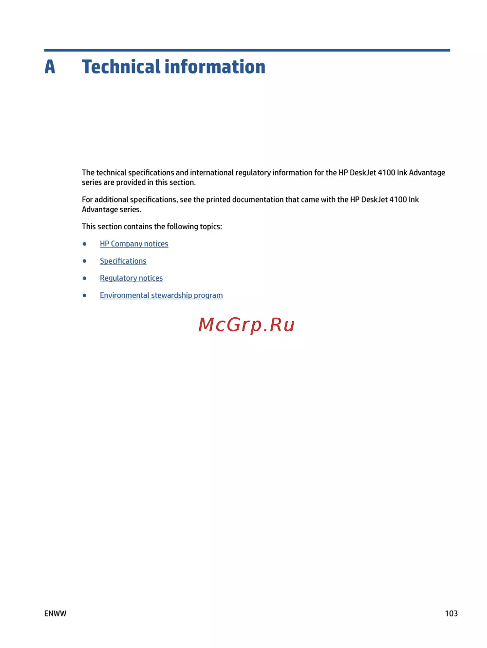 The technical specications and international regulatory information for the HP DeskJet 4100 Ink Advantage