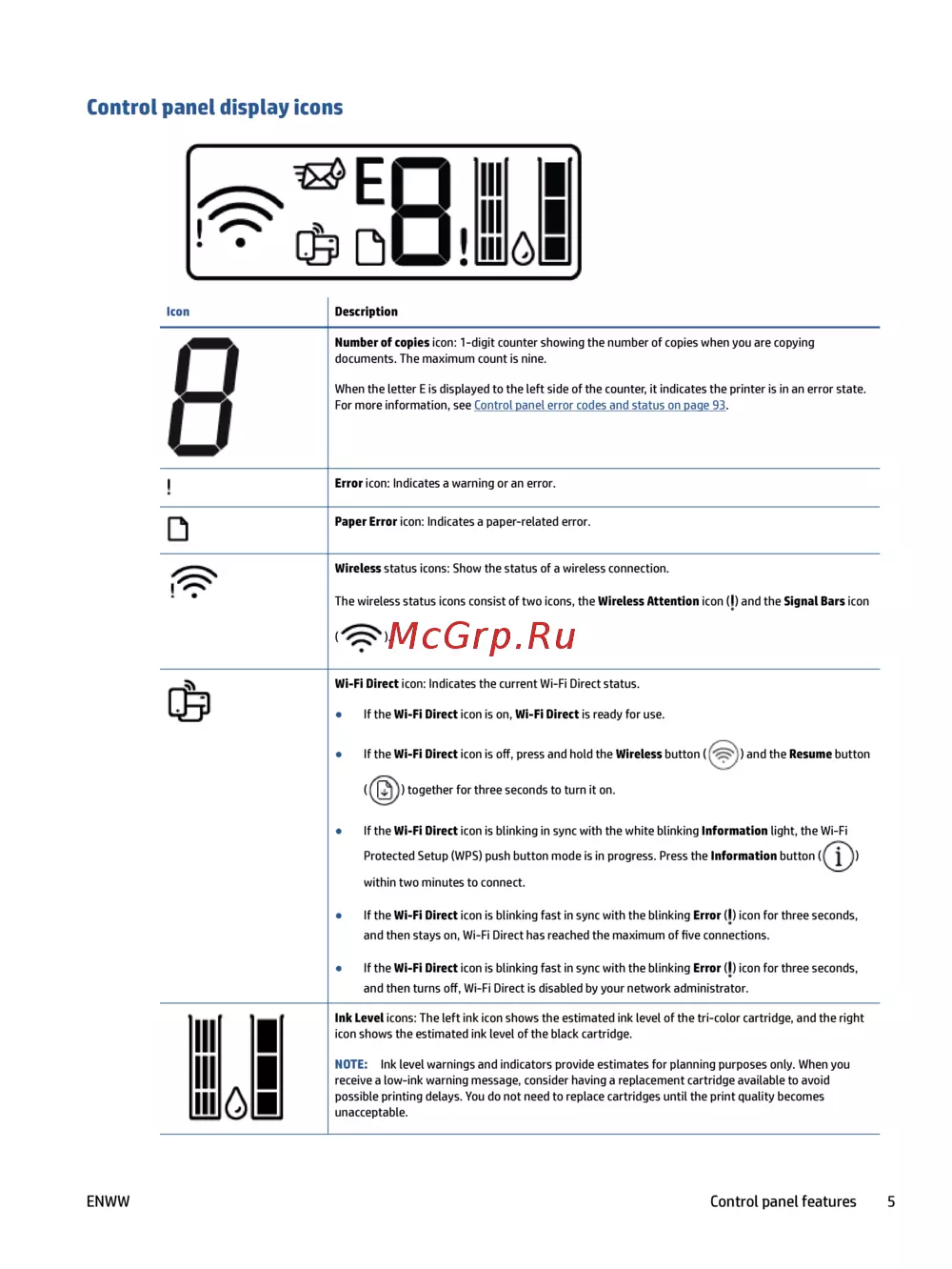 HP DeskJet Ink Advantage Ultra 4828 Printer (25R76A) — understanding Control Panel Display Icons for Printing Devices [11/128]