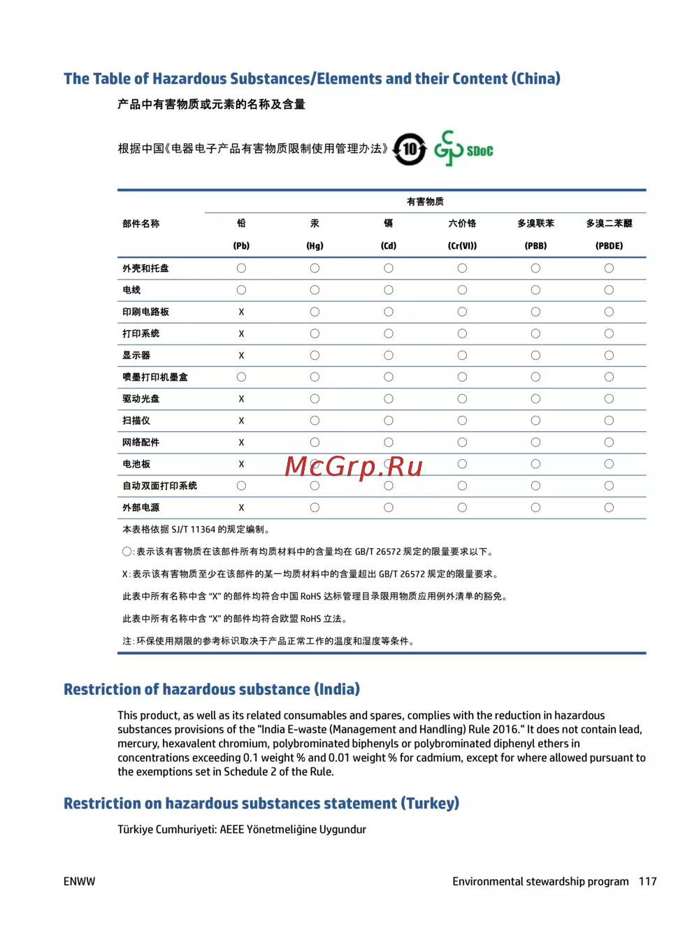- Restriction on hazardous substances statement turkey p.123