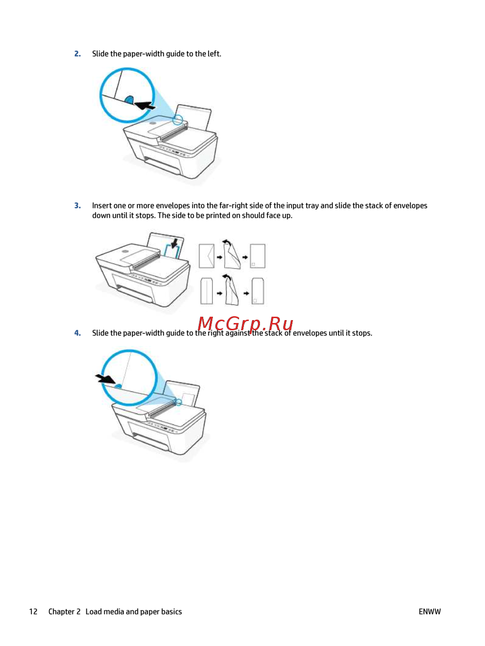 4. Slide the paper-width guide to the right against the stack of envelopes until it stops.