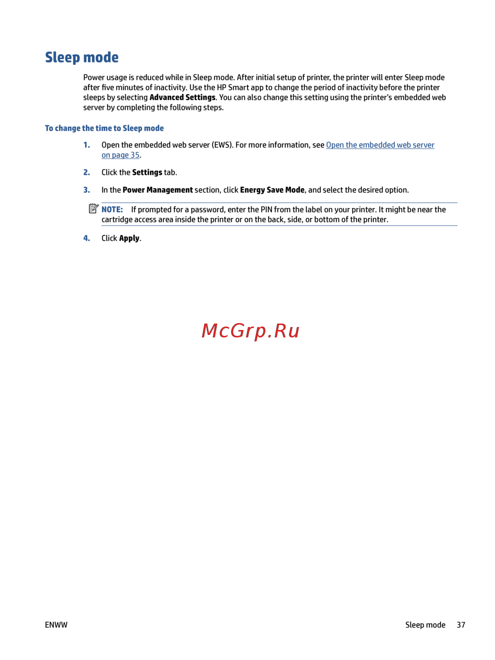 Power usage is reduced while in Sleep mode. After initial setup of printer, the printer will enter Sleep mode