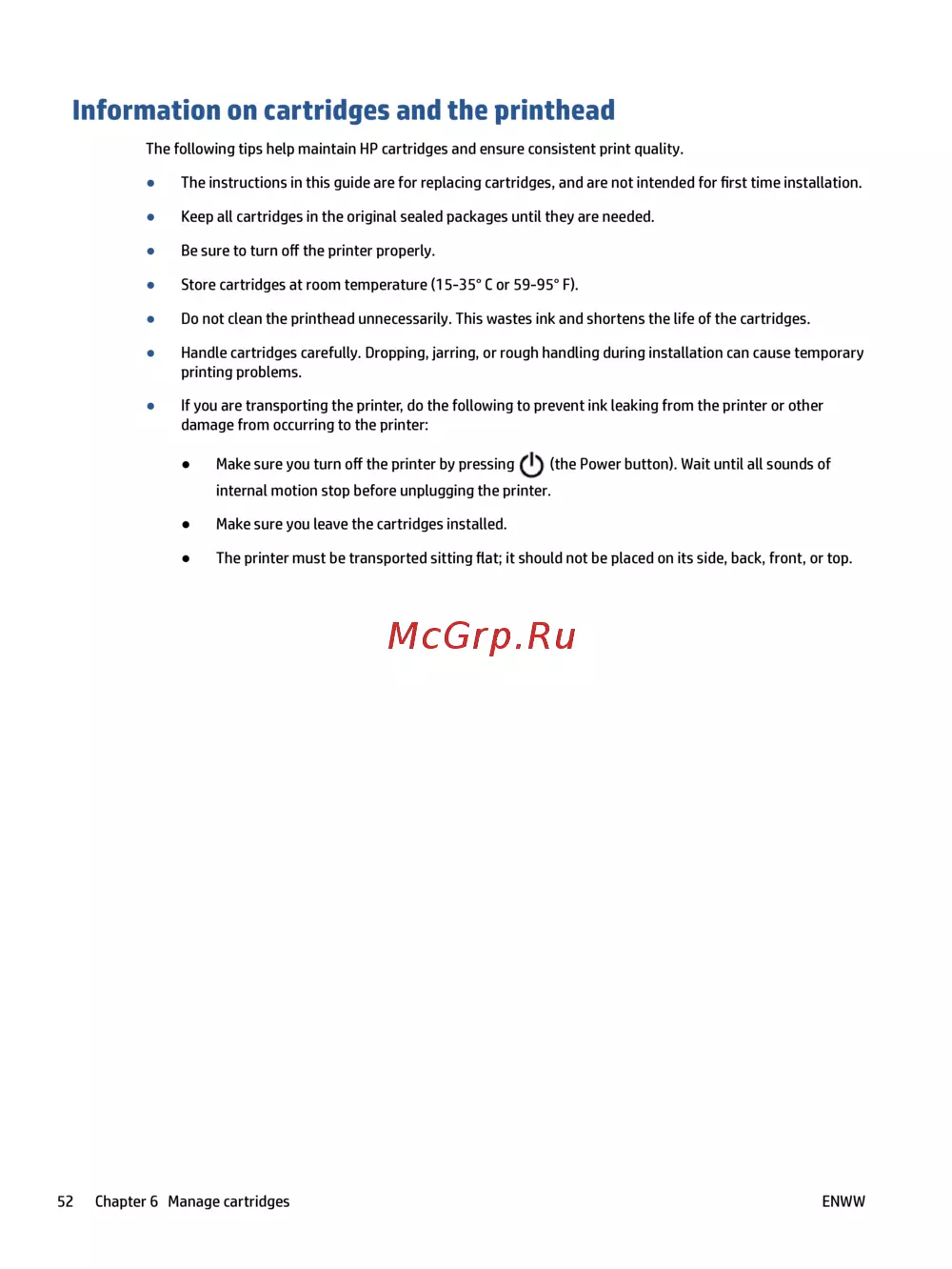 ● Store cartridges at room temperature (15-35° C or 59-95° F).