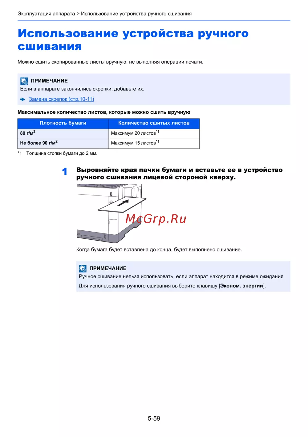 Эксплуатация аппарата > Использование устройства ручного сшивания