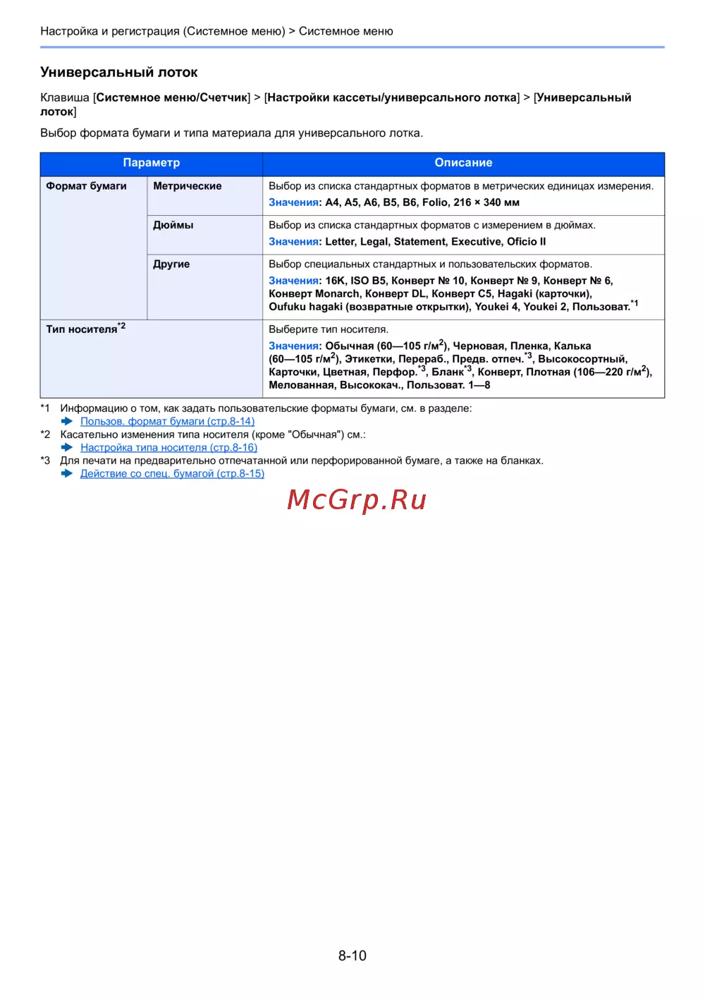 *1 Информацию о том, как задать пользовательские форматы бумаги, см. в разделе: