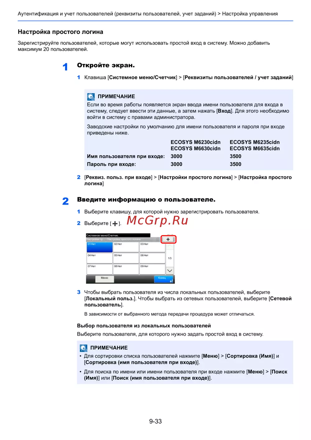 Kyocera M6635cidn (1102V13NL1) — настройка простого логина и учет пользователей в системе [384/507]