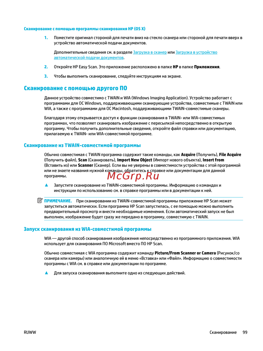 WIA, а также с программами для ОС Macintosh, поддерживающими TWAIN-совместимые сканеры.