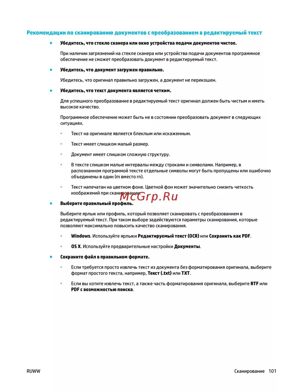 HP PageWide Pro MFP 477dw(D3Q20B) [117/231] Рекомендации по сканированию документов с преобразованием в редактируемый текст