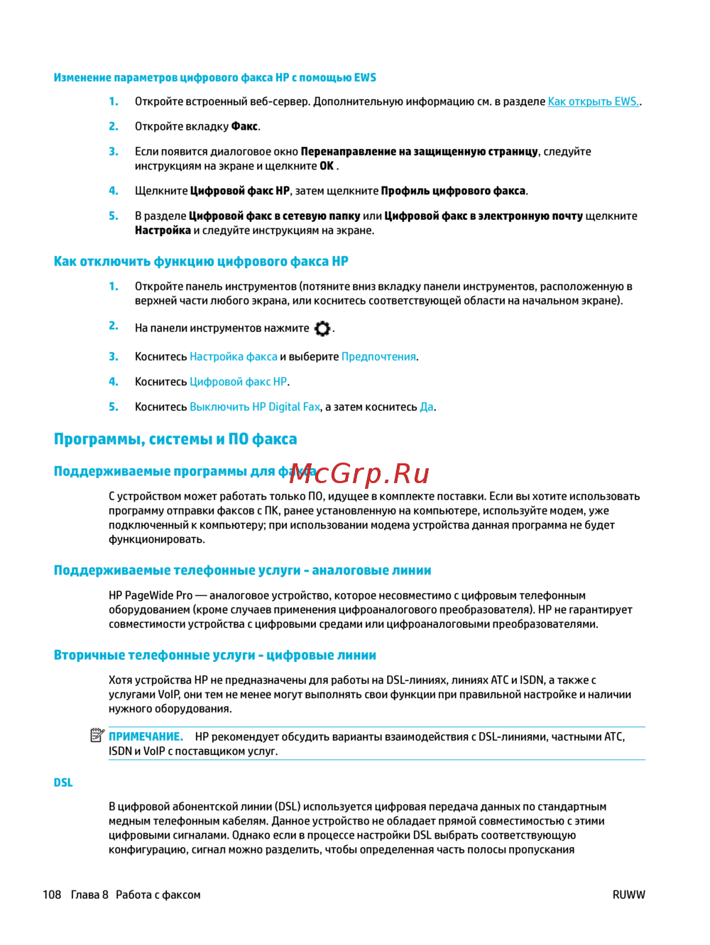 HP PageWide Pro MFP 477dw(D3Q20B) — настройка и отключение цифрового факса: пошаговое руководство [124/231]