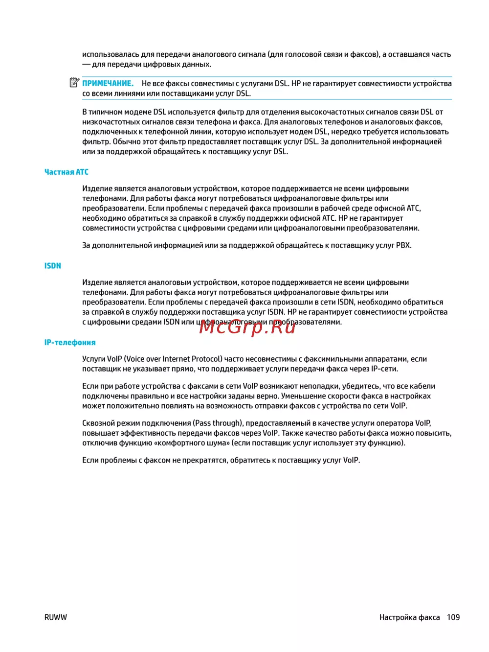 HP PageWide Pro MFP 477dw(D3Q20B) — совместимость факсов с DSL, ISDN и VoIP: важные аспекты [125/231]