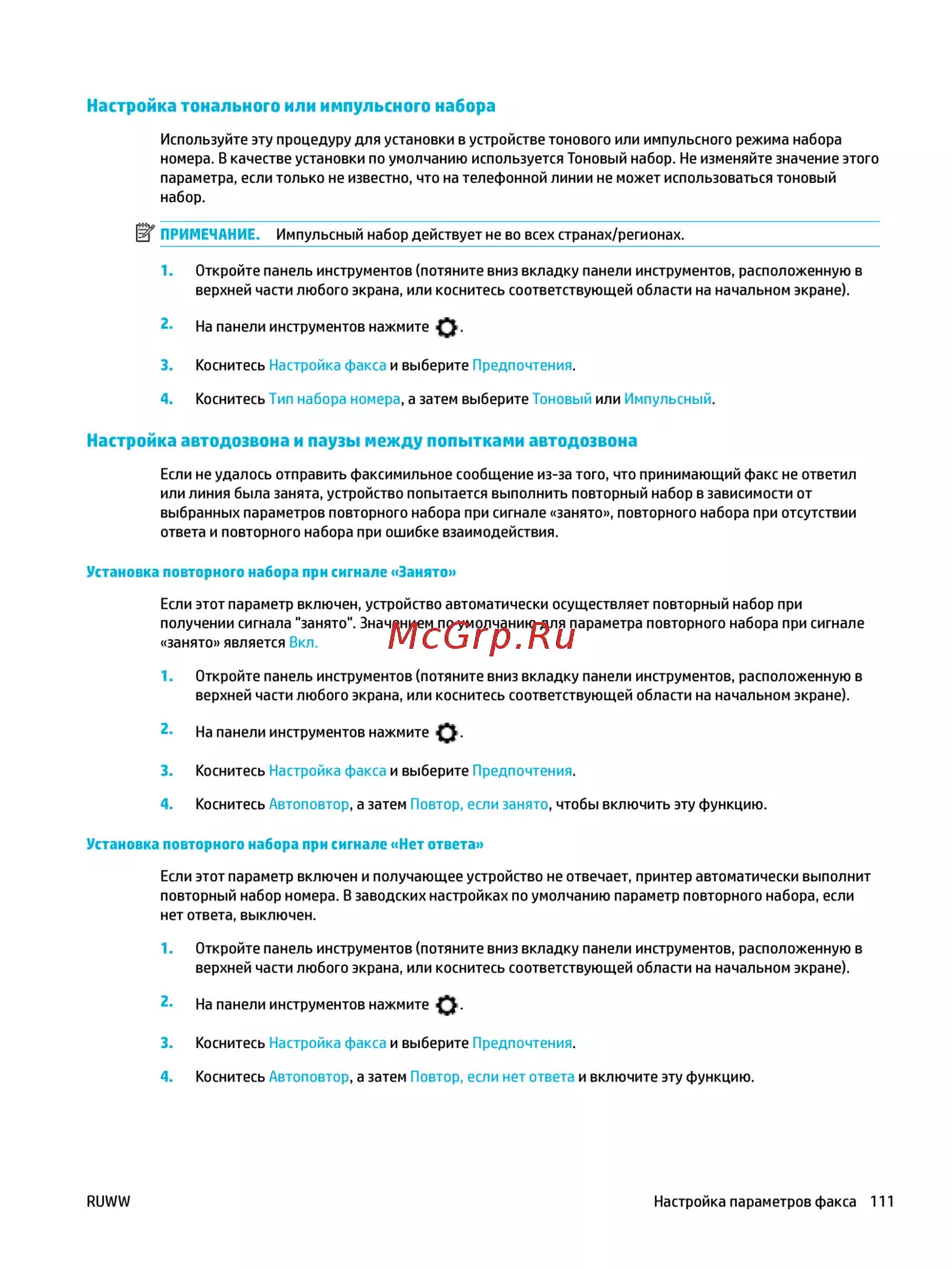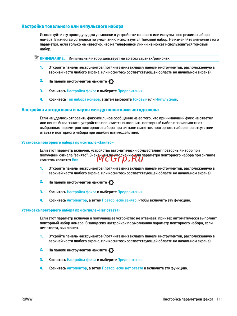 HP PageWide Pro MFP 477dw(D3Q20B) [127/231] Настройка тонального или импульсного набора