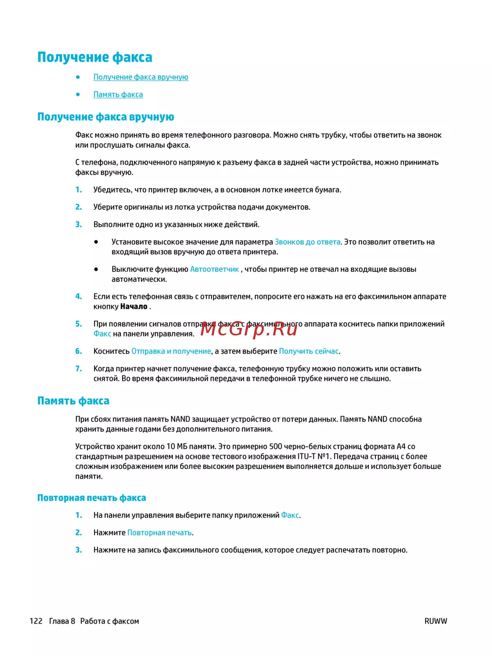 122 Глава 8 Работа с факсом RUWW