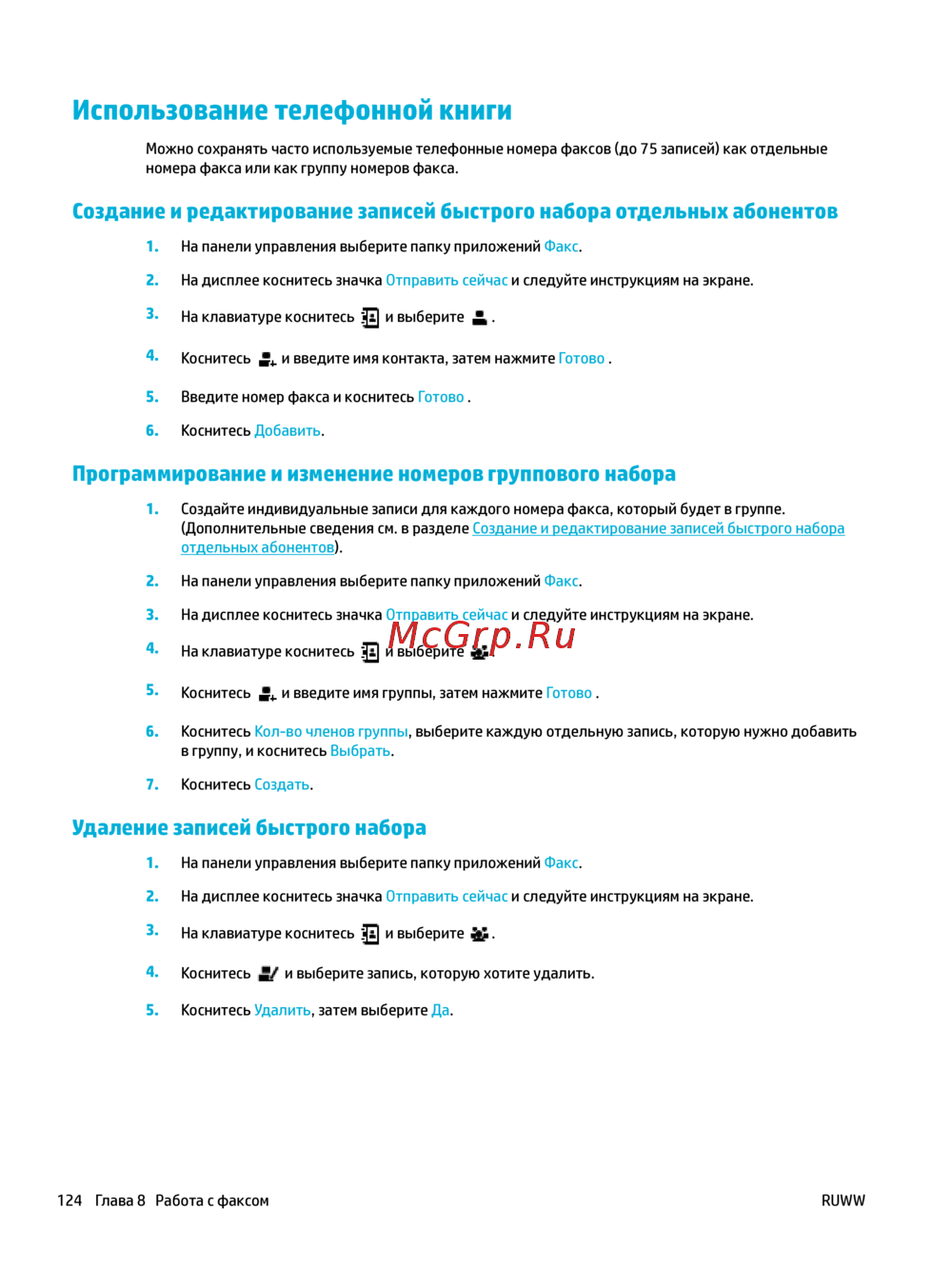 HP PageWide Pro MFP 477dw(D3Q20B) [140/231] Удаление записей быстрого набора