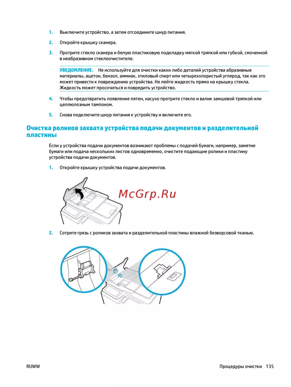HP PageWide Pro MFP 477dw(D3Q20B) [151/231] Очистка роликов захвата устройства подачи документов и разделительной пластины