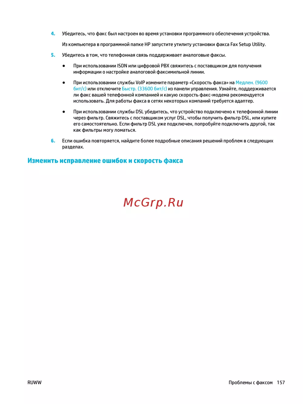 HP PageWide Pro MFP 477dw(D3Q20B) [173/231] Изменить исправление ошибок и скорость факса