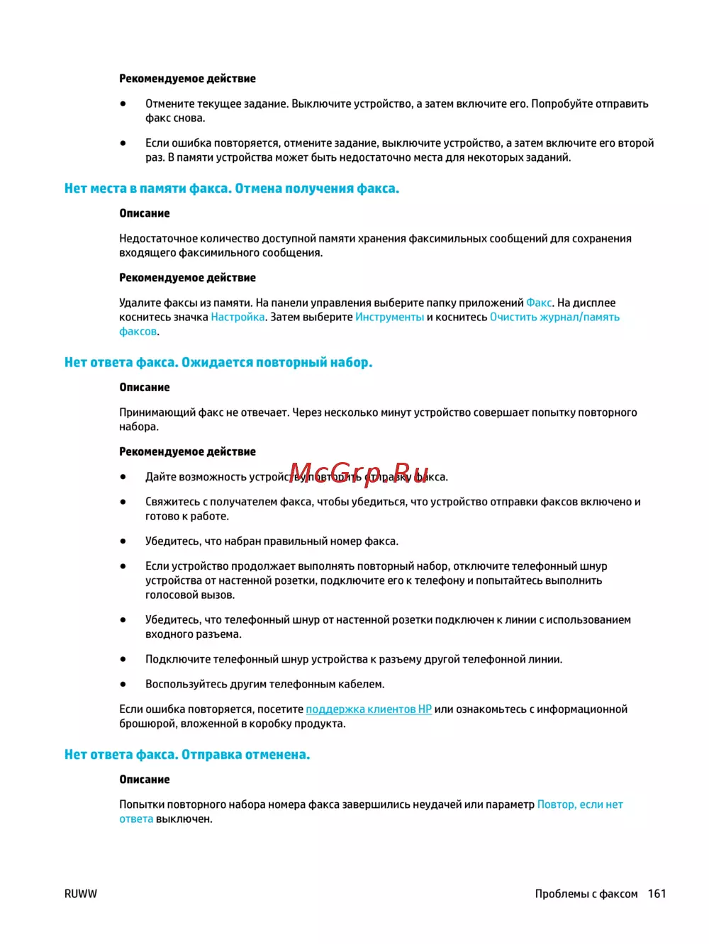 HP PageWide Pro MFP 477dw(D3Q20B) — ошибка факса: как исправить проблемы с памятью и приемом [177/231]