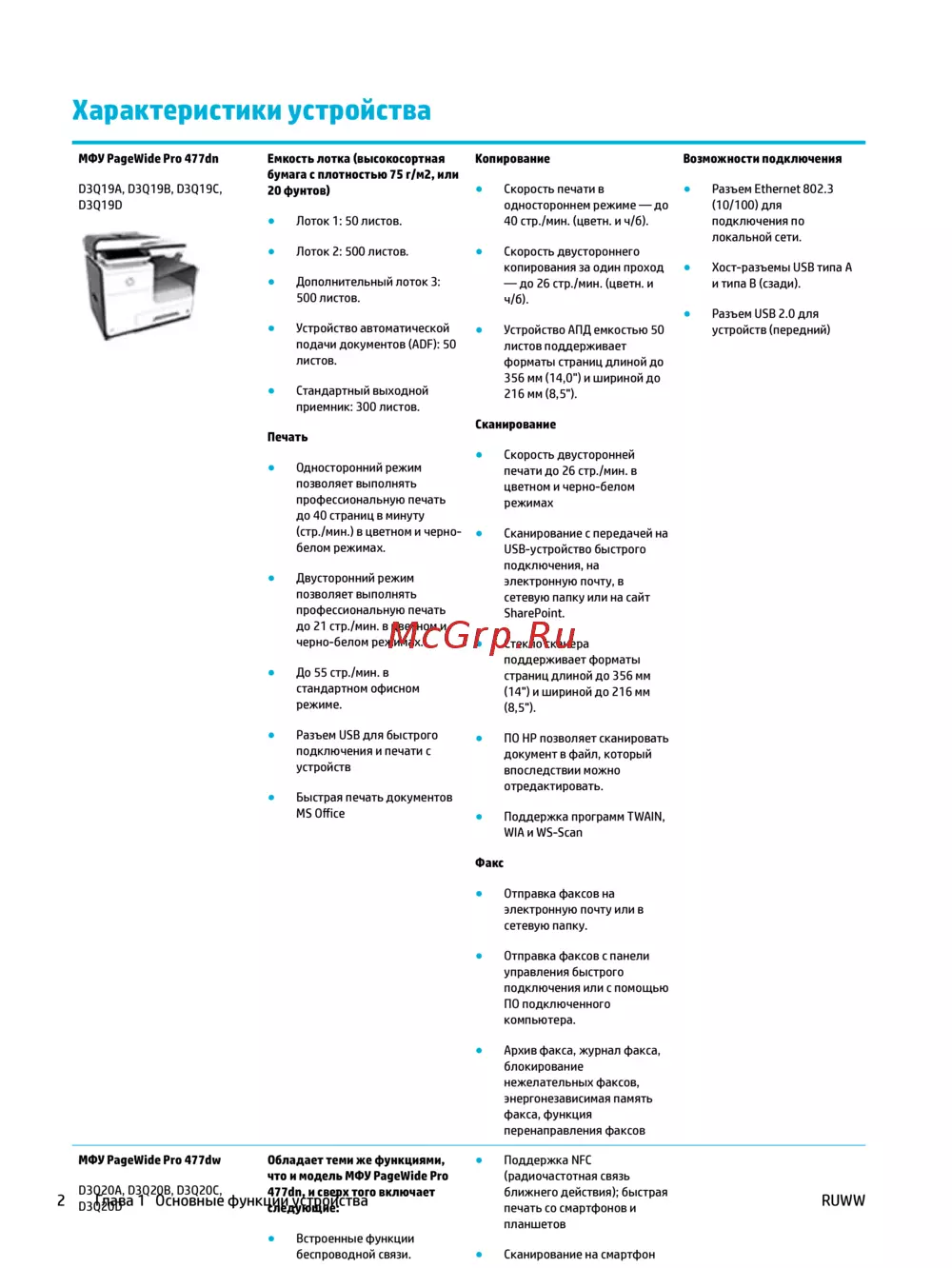 HP PageWide Pro MFP 477dw(D3Q20B) [18/231] Характеристики устройства