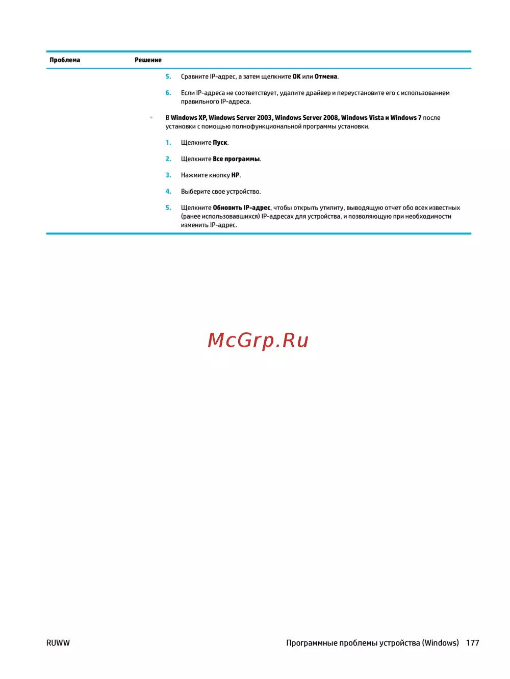 HP PageWide Pro MFP 477dw(D3Q20B) [193/231] Ruww программные проблемы устройства windows 177