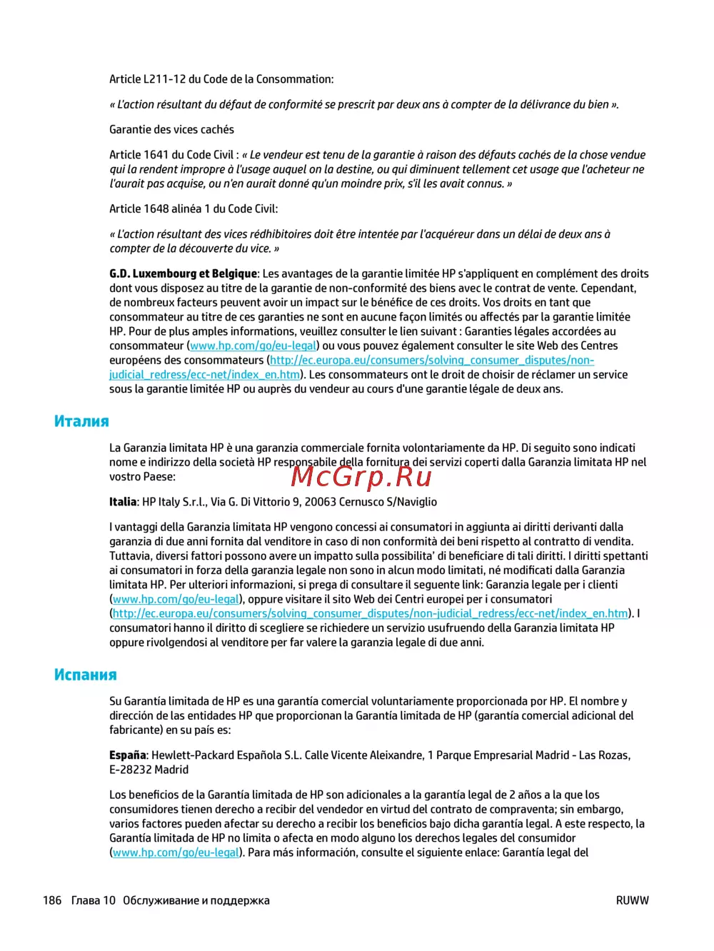 (www.hp.com/go/eu-legal). Para más información, consulte el siguiente enlace: Garantía legal del
