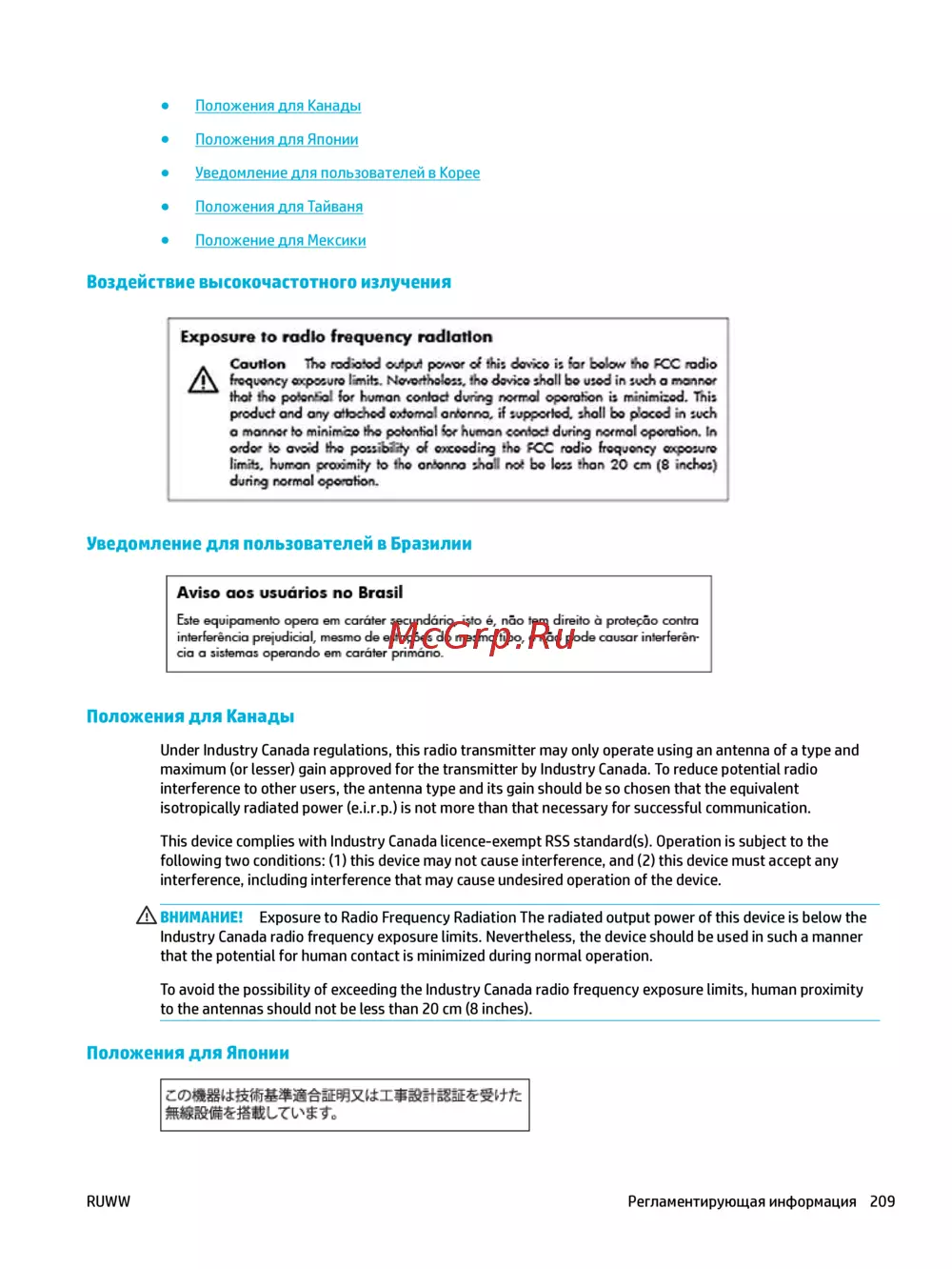 HP PageWide Pro MFP 477dw(D3Q20B) [225/231] Уведомление для пользователей в бразилии