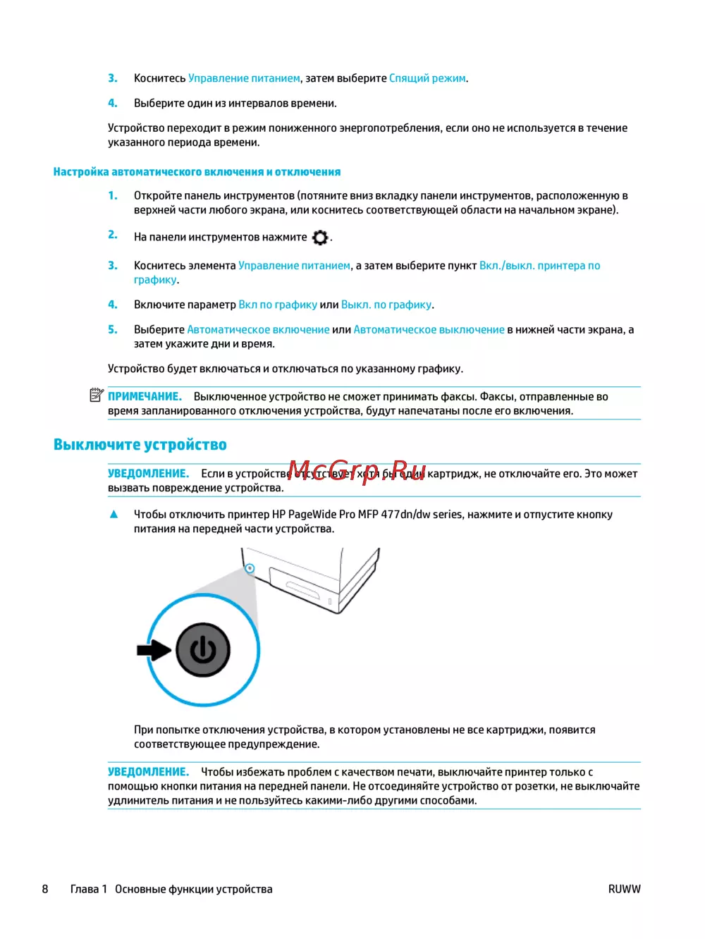 HP PageWide Pro MFP 477dw(D3Q20B) [24/231] Выключите устройство