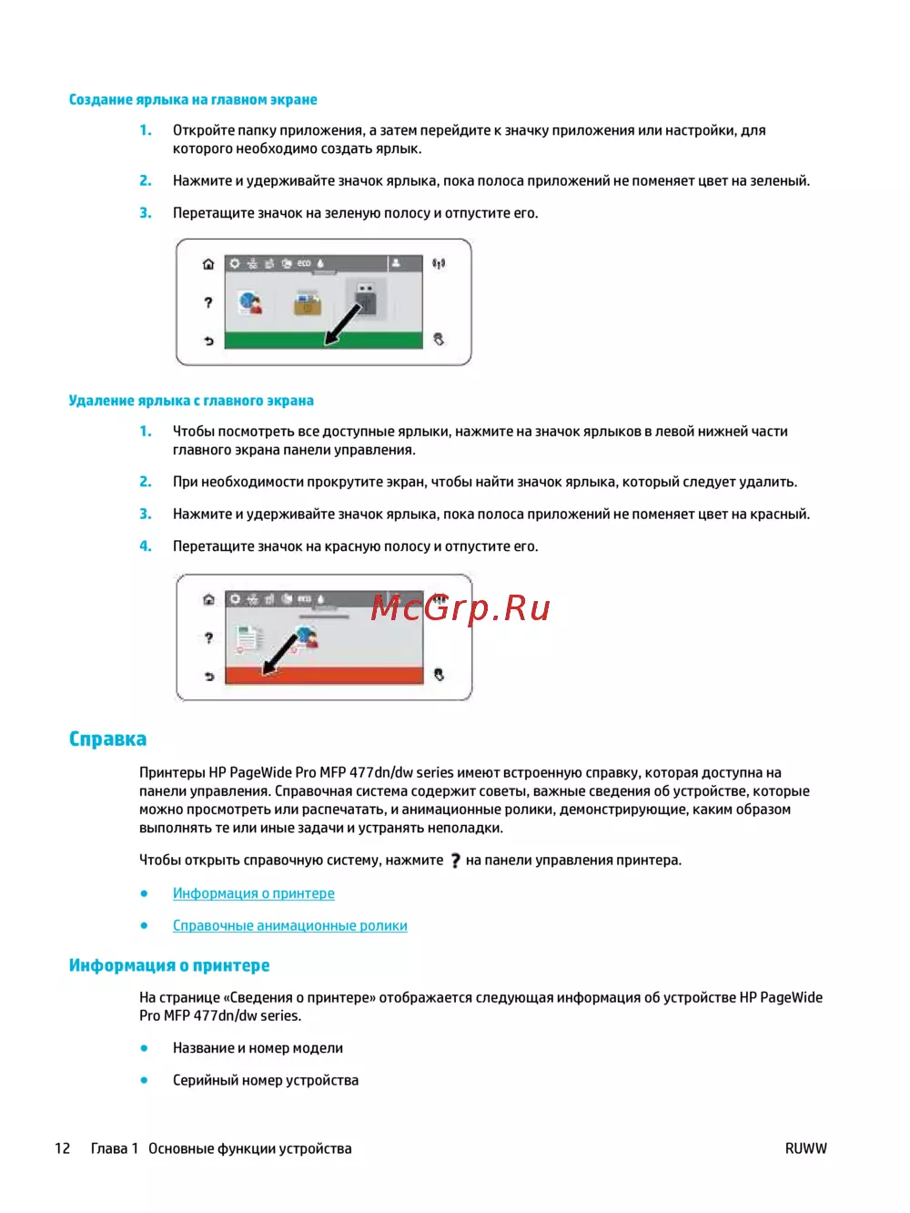 HP PageWide Pro MFP 477dw(D3Q20B) — как создать и удалить ярлыки на главном экране устройства [28/231]